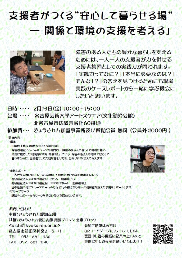 きょうされん愛知支部主催研修会 「支援者がつくる安心して暮らせる場ー関係と環境…
